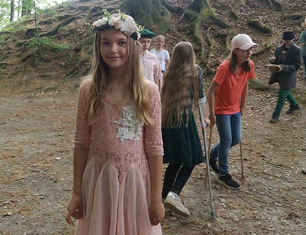 Die hier gezeigten Fotos stellen eine schauspielerische Wanderung von Kindern und Jugendlichen 'auf Stelzen' zur Heilquelle dar, mit Heilung, mit Frau Idisa und einem geldsüchtigen Geschäftsmanne. Lest euch die Sage durch. Kurz & knapp.